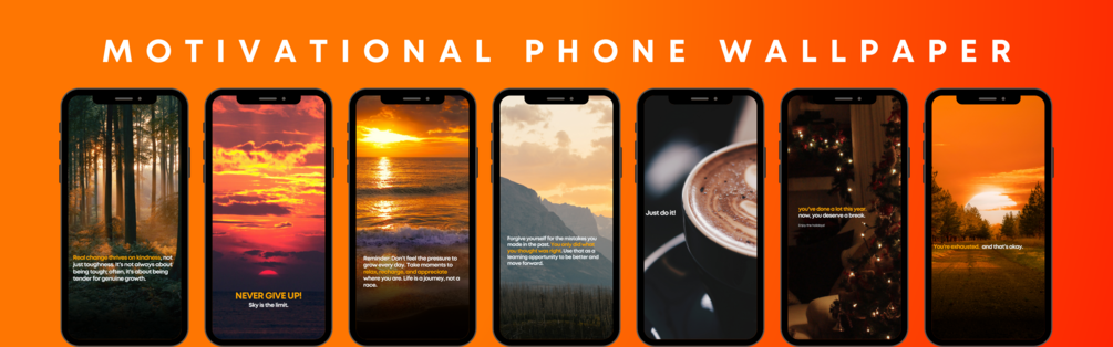 7 different wallpapers with motivational, inspirational, self-affirmation, and self-validating quotes.